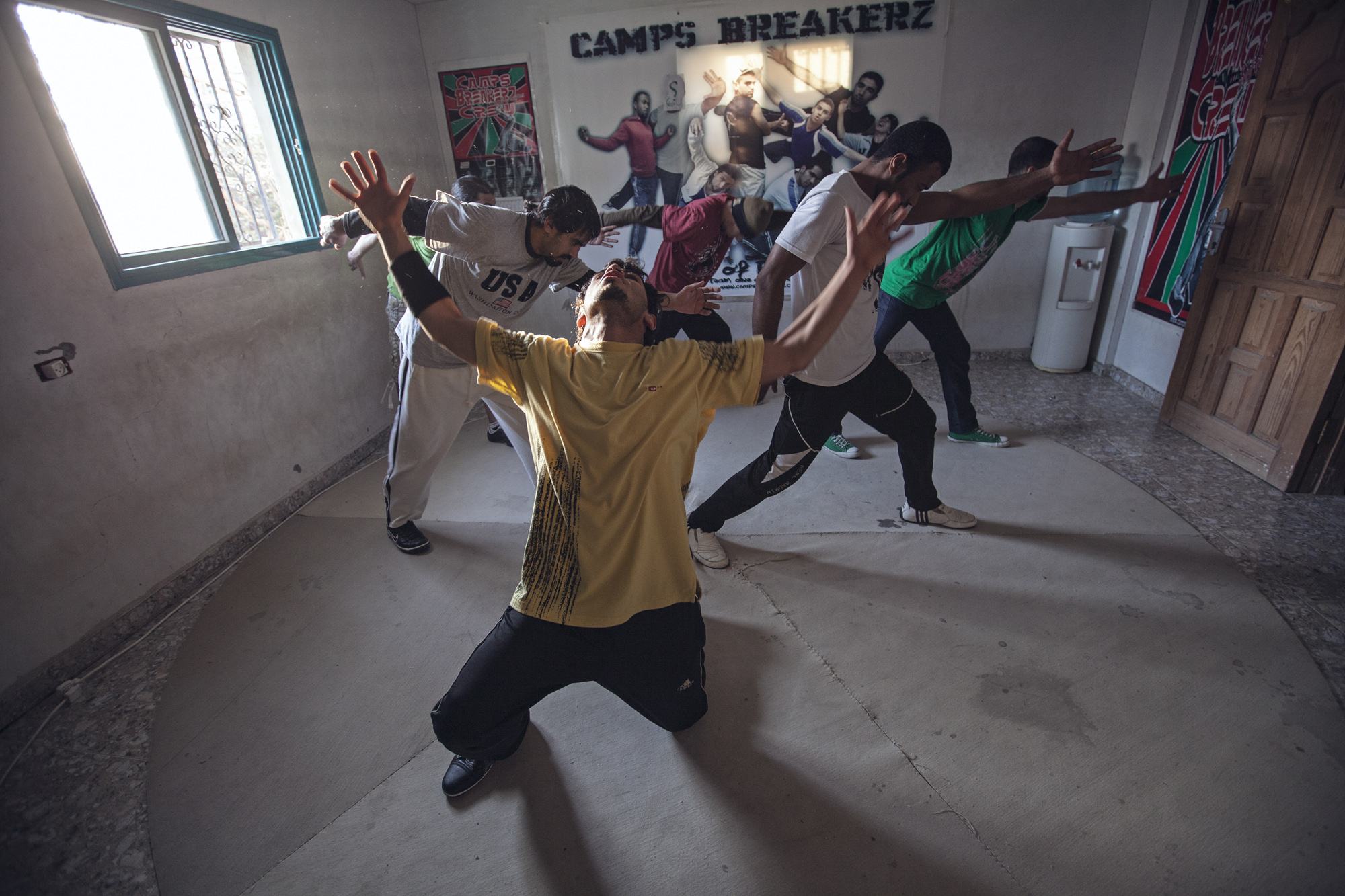 Camps Breakerz is the name of a group of young people living in a refugee camp in the Gaza Strip who gather every day in a derelict building to improve their dancing skills.