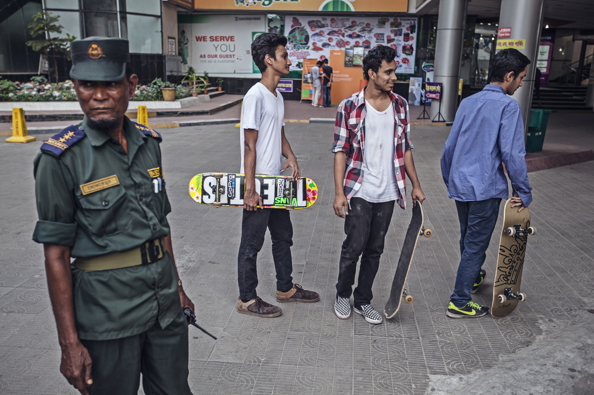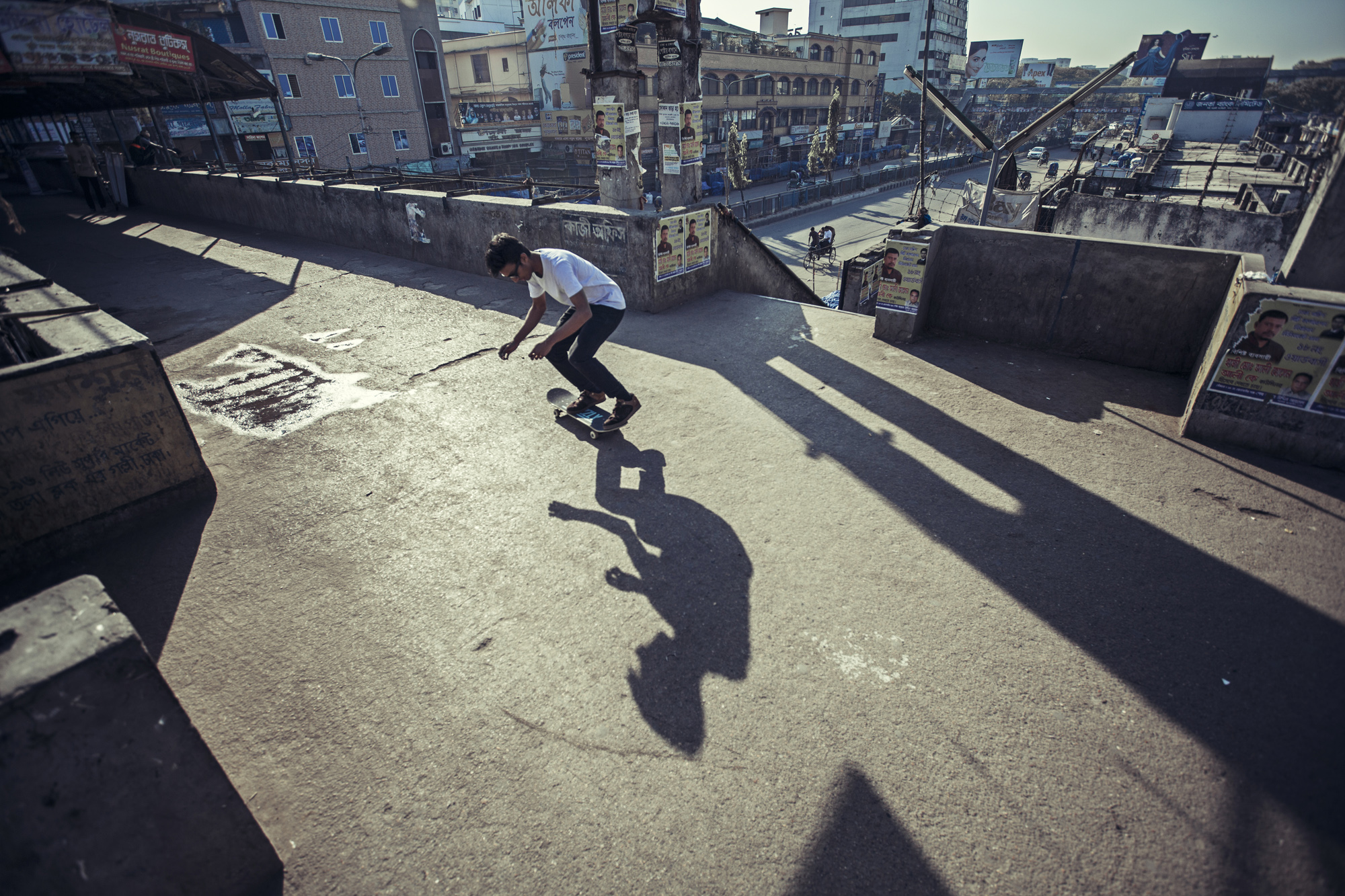 Do you know No Country for Old Men movie? Bangladesh is no country for skateboarders. But guys are trying wherever they can. In the whole Bangladesh, there are just three skaterboarders, and we are lucky enough we could met with them.